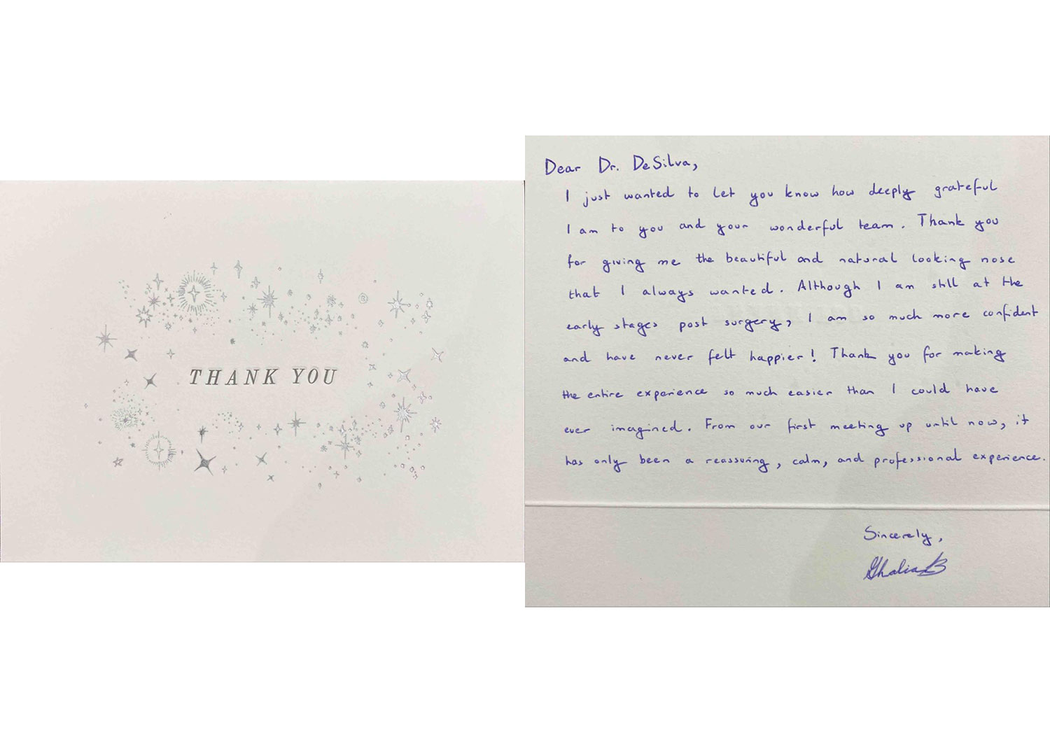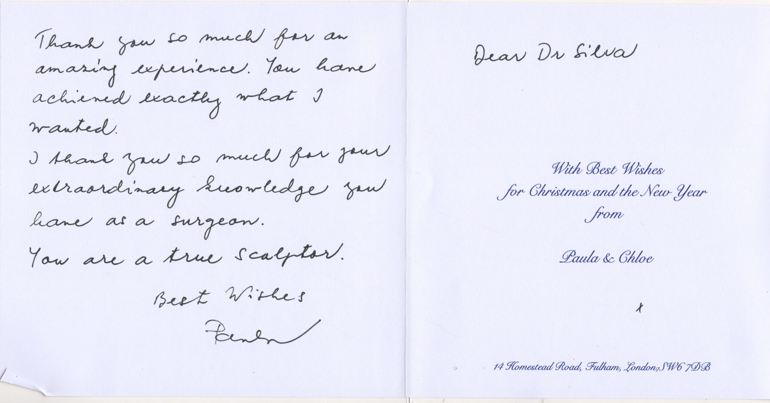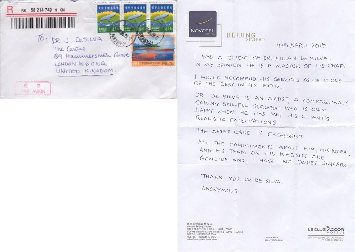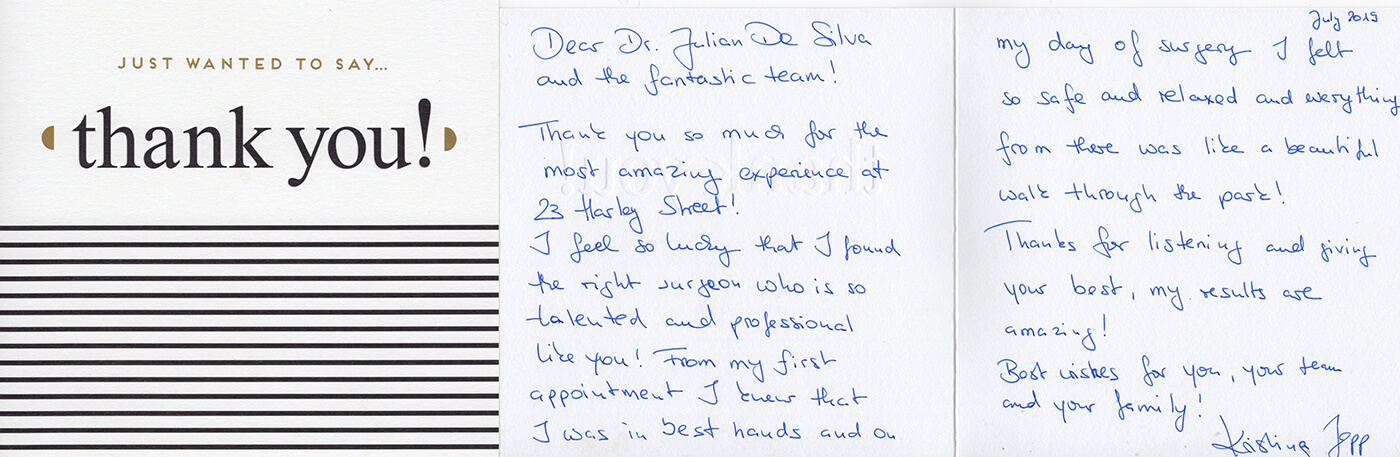 I proceeded with my own research before the surgery and I visited two other top surgeons I selected from my short list before I’ve met Dr De Silva. So I am very happy about the choice I made finally.