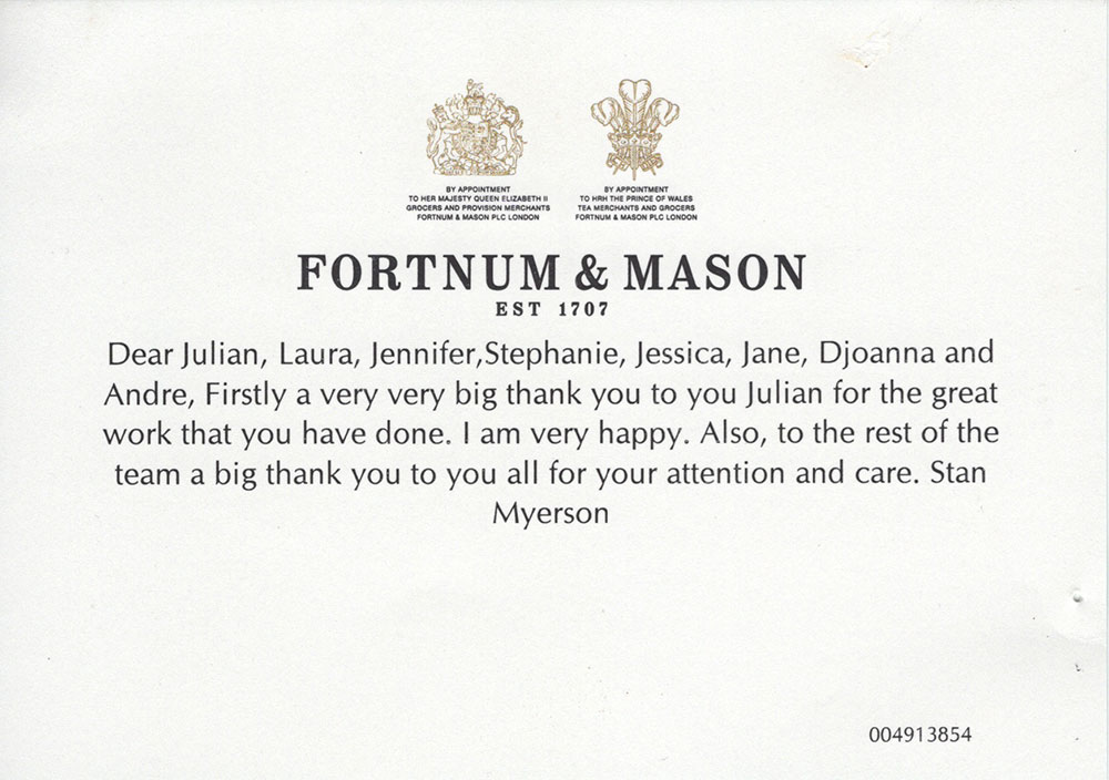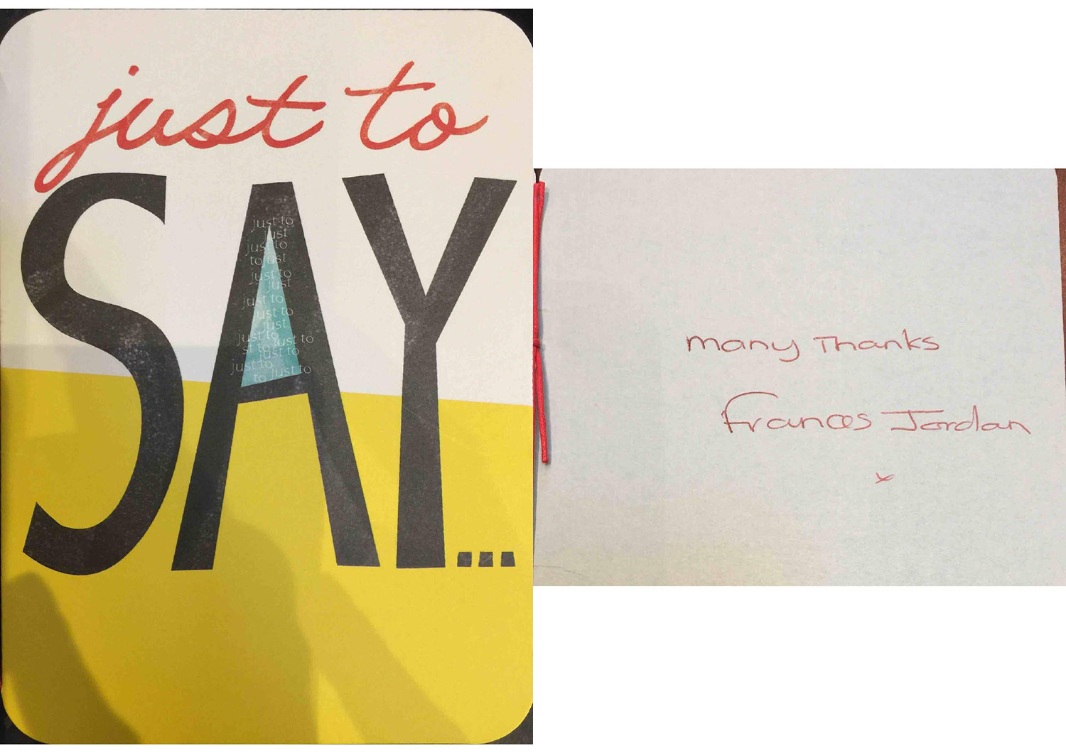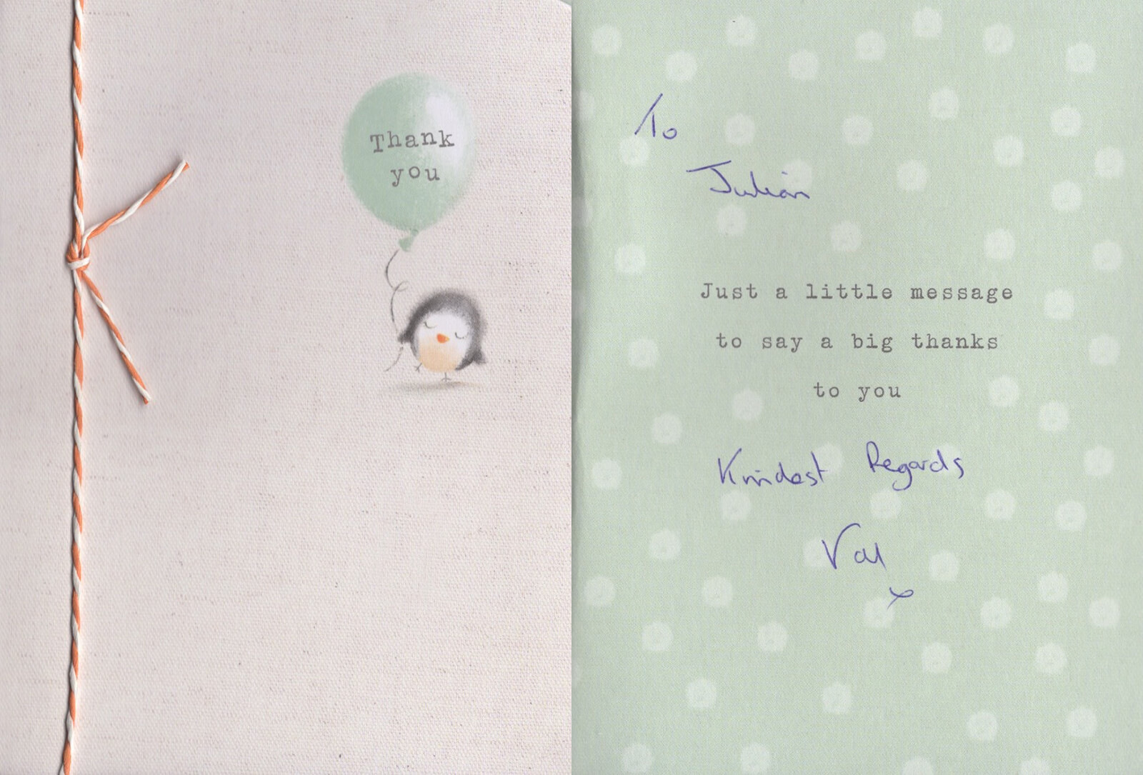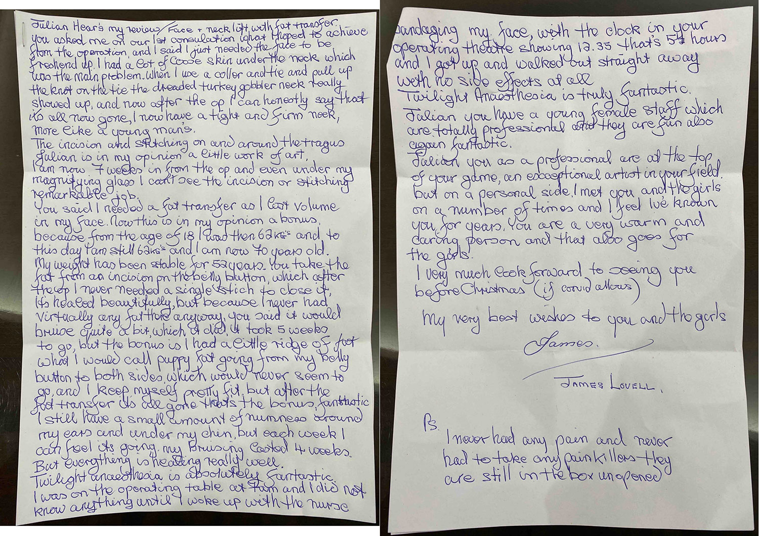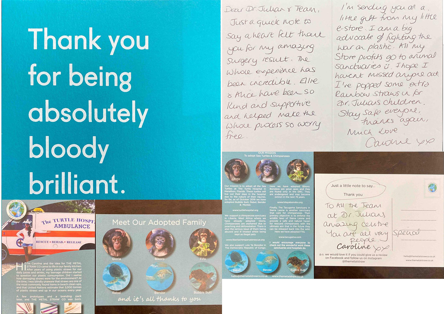 “Thank you for your professional service and kindness. You made the procedure a pleasant experience and I felt reassured and confident throughout. Many many thanks. Regards TL”