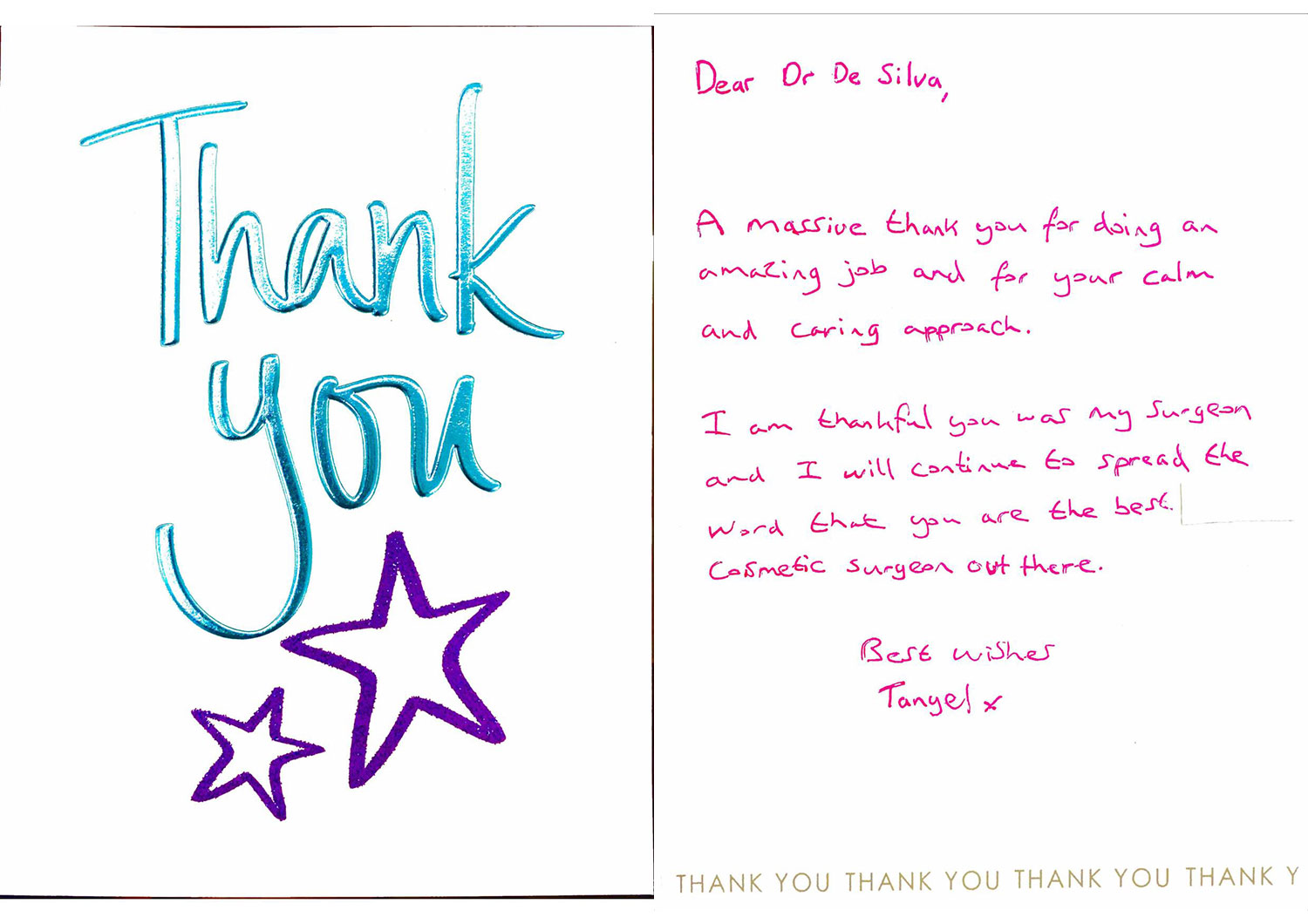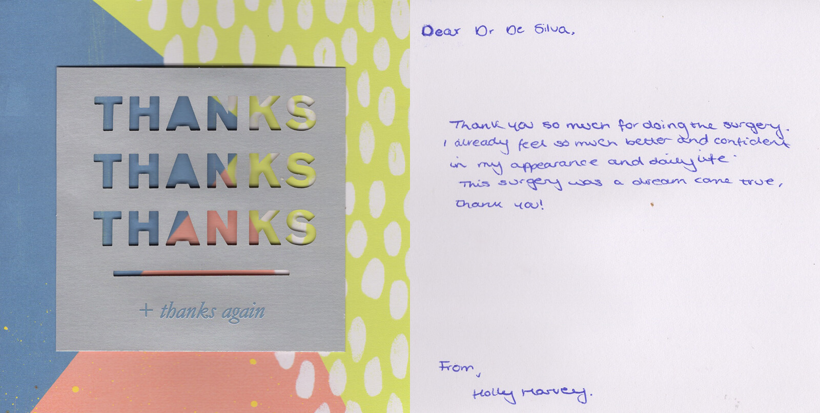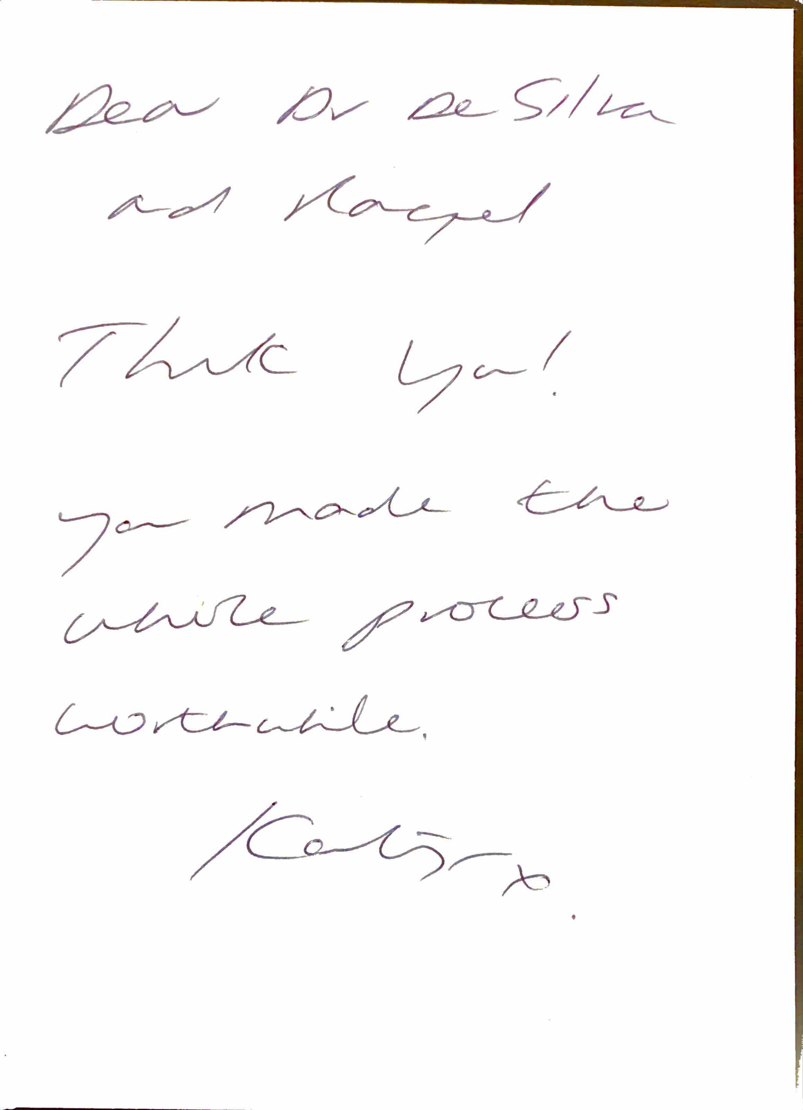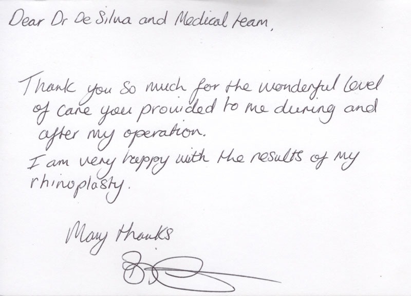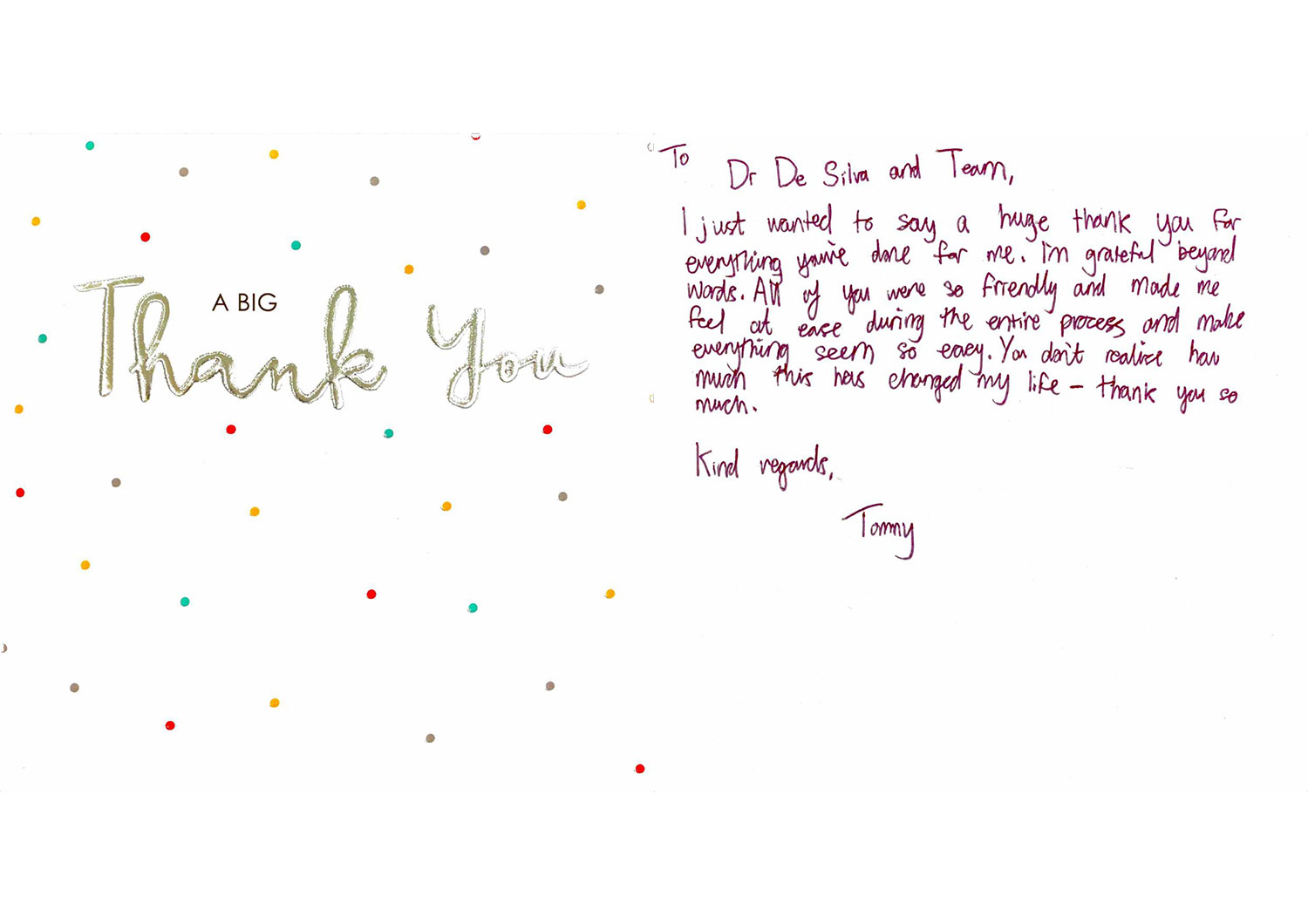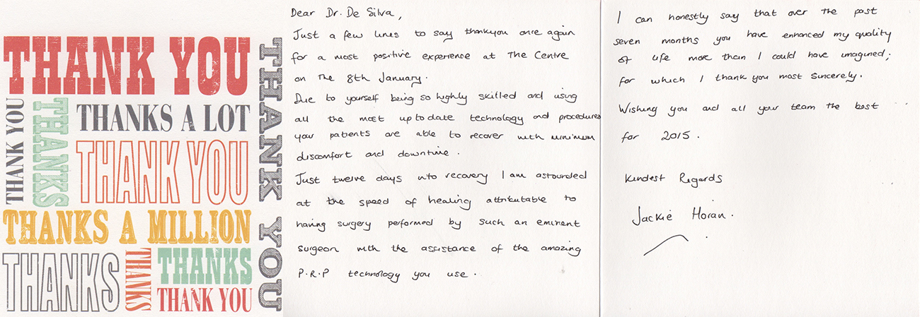 “I was very impressed with Dr De Silva’s surgical and anaesthetic care, thank you.”