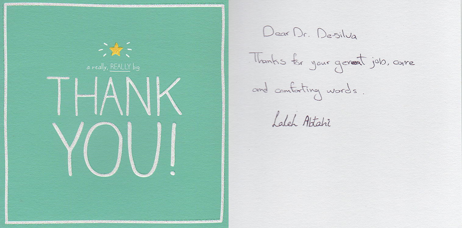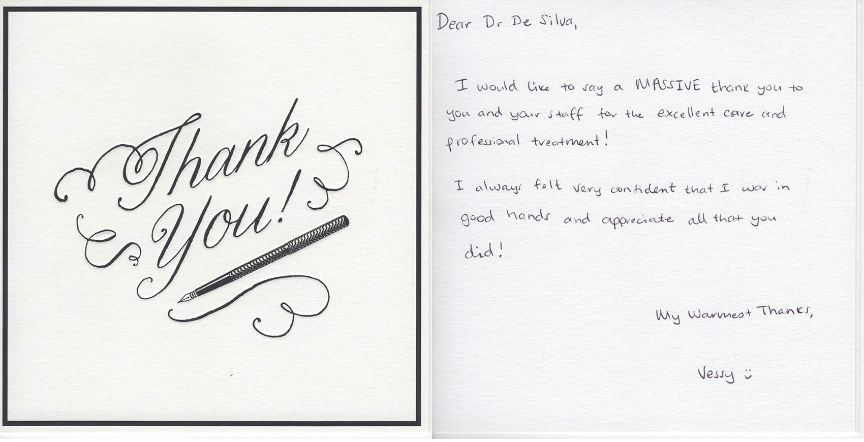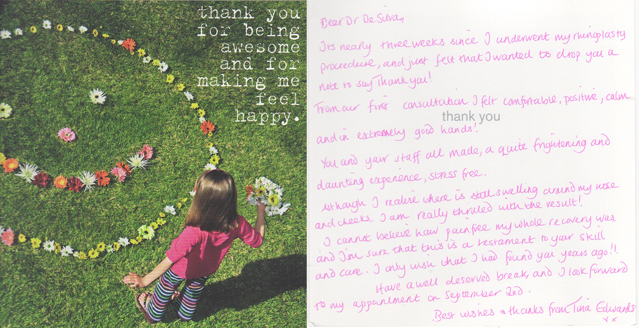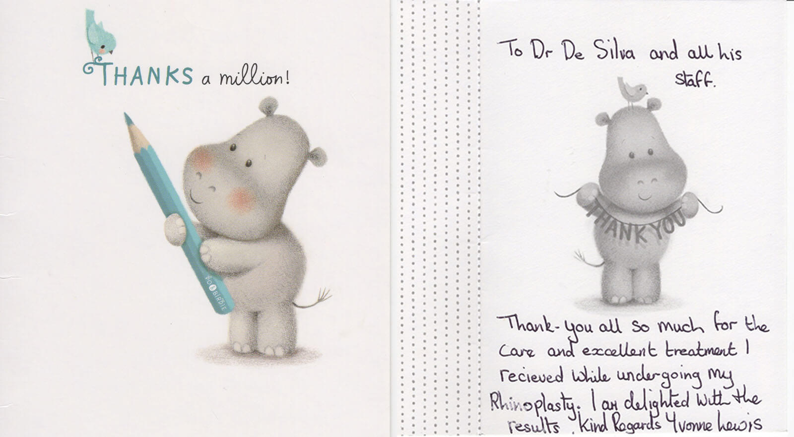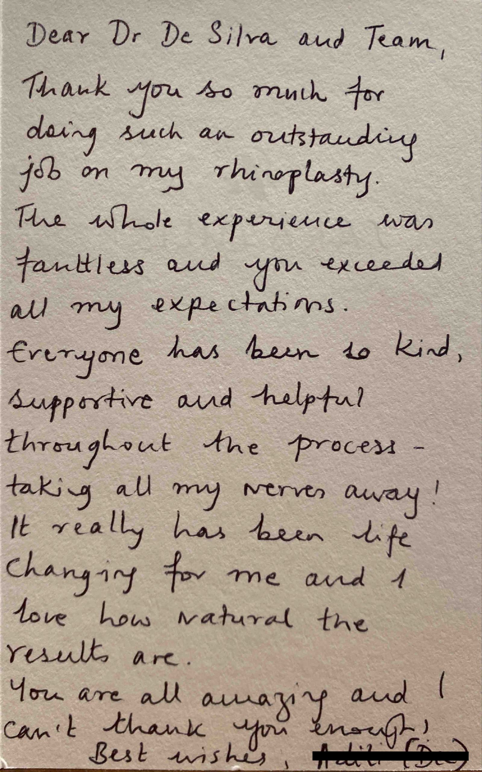“I was very impressed with Dr De Silva’s surgical and anaesthetic care, thank you.”
