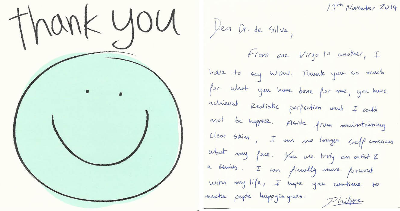Everything from that point on was seamless. Dr de Silva’s clinic is run and managed by the most amazingly competent staff. Professional to the end – everything runs like clock-work. No question is too small or ridiculous. From start to finish I felt I was in the best of hands.