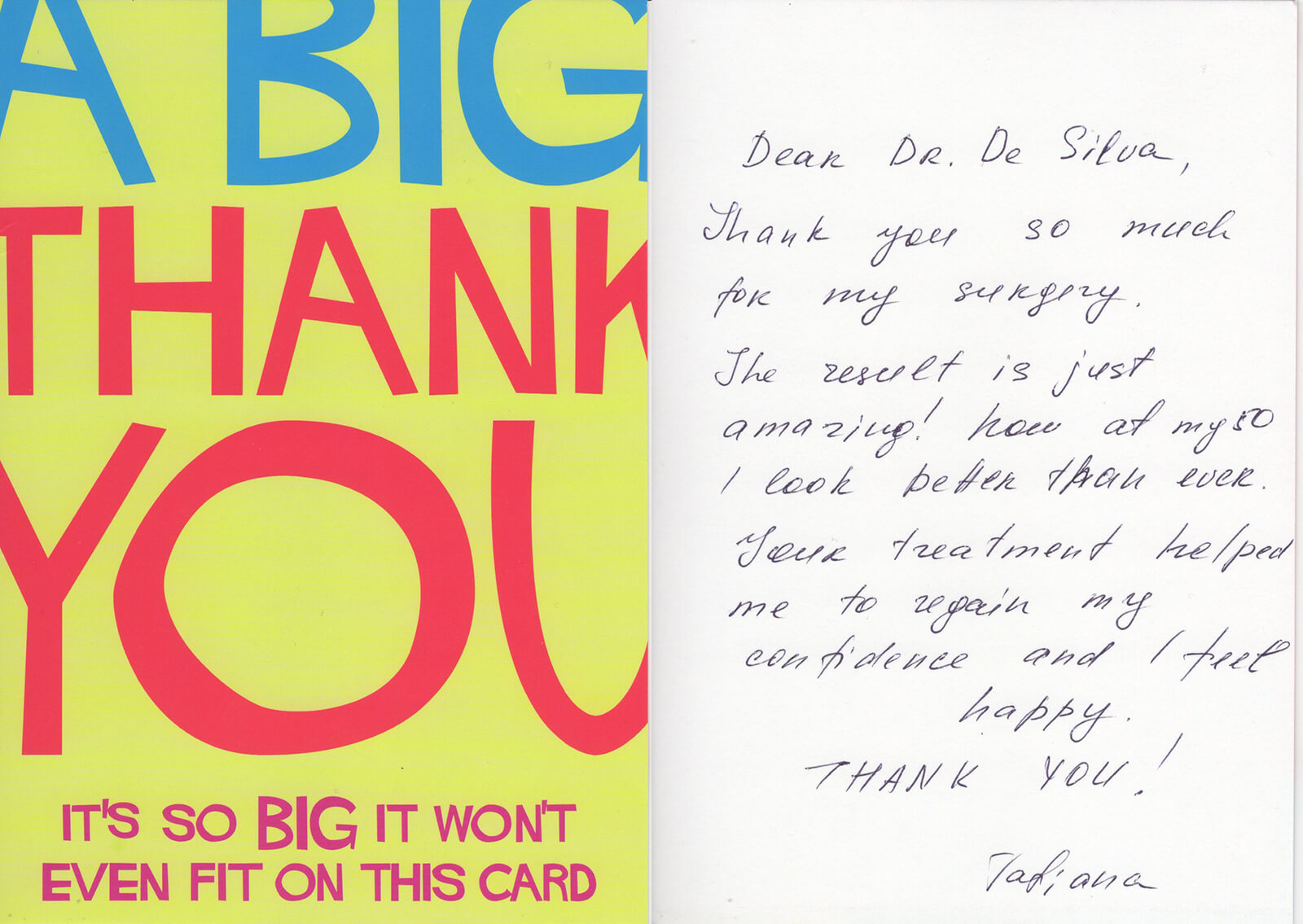 I just wanted to say thank you, because I appreciate how much skill it takes to do such subtle work and how much training, dedication, money and commitment has gone into your life as a plastic surgeon.